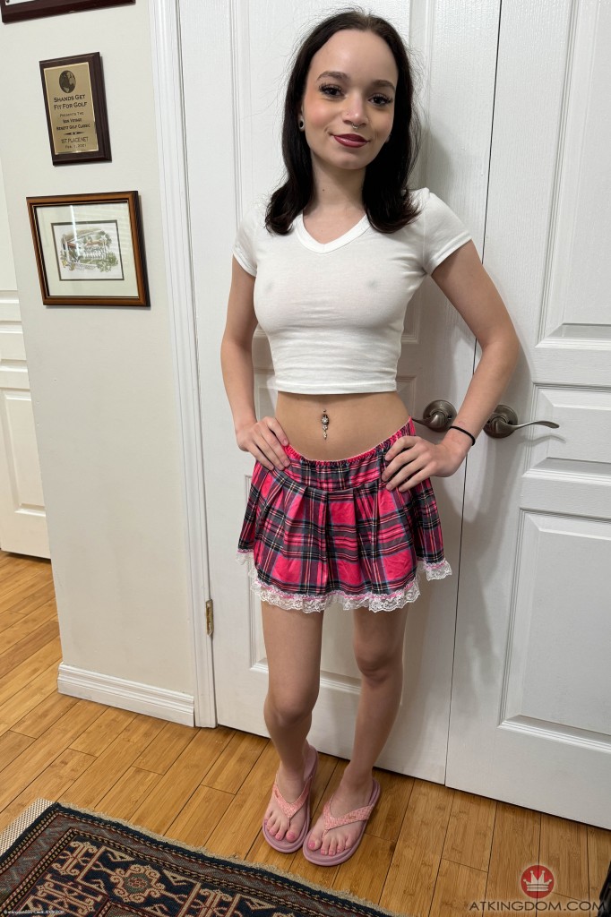 Petite brunette shows off her amazingly firm tits from